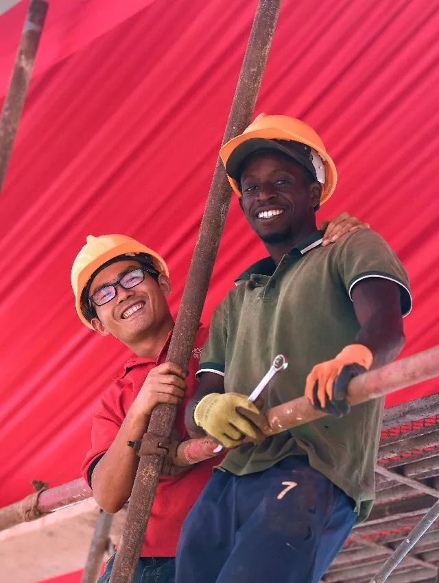 中塞工人并肩工作。(新華社記者燕雁攝)