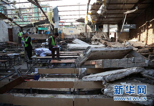 新華社報(bào)道員在現(xiàn)場(chǎng)看到,此次襲擊威力巨大,遇襲教室內(nèi)的天花板在爆炸中嚴(yán)重受損,從黑板、座椅到地面,到處都能看到尚未來(lái)得及清理的血跡,學(xué)員們的課本、文具等四處散落。教室外不時(shí)有家長(zhǎng)趕來(lái),急切打聽(tīng)自家孩子的下落。