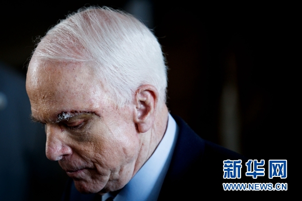 這是2017年7月25日在美國華盛頓國會山拍攝的麥凱恩投票后離開的資料照片。 新華社發(fā)(沈霆攝)