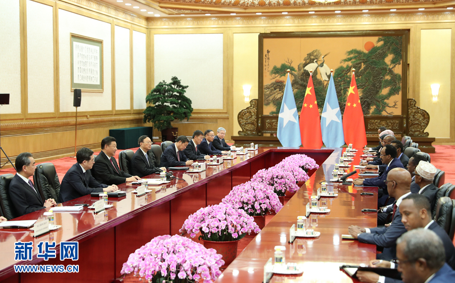 8月31日,國家主席習(xí)近平在北京人民大會堂會見索馬里總統(tǒng)穆罕默德。 新華社記者 丁林 攝