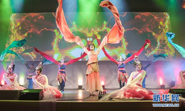 2月16日,在愛爾蘭首都都柏林,來自中國湖北省歌劇舞劇院的演員在春節(jié)聯(lián)歡晚會(huì)上表演舞蹈。新華社發(fā)
