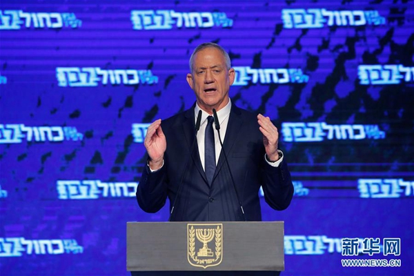以色列藍(lán)白黨領(lǐng)導(dǎo)人甘茨4月10日晚發(fā)表講話,承認(rèn)在議會選舉中失敗。這是4月9日,在以色列特拉維夫,以色列藍(lán)白黨領(lǐng)導(dǎo)人甘茨對支持者講話。新華社發(fā)(吉爾·科恩·馬根 攝)