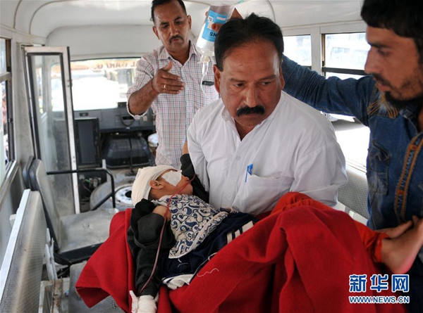 7月1日,在印控克什米爾查謨,一名受傷的乘客被送往醫(yī)院接受治療。新華社發(fā)