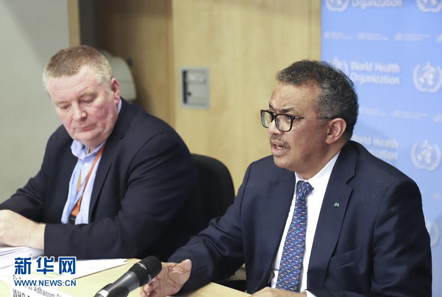 3月5日,在瑞士日內(nèi)瓦,世界衛(wèi)生組織總干事譚德塞(右)在世衛(wèi)組織例行記者會(huì)上發(fā)言。世界衛(wèi)生組織總干事譚德塞5日呼吁,各國(guó)應(yīng)調(diào)動(dòng)并協(xié)調(diào)政府各部門間的行動(dòng),以“全政府”參與的方式應(yīng)對(duì)新冠肺炎疫情。 新華社記者 陳俊俠 攝