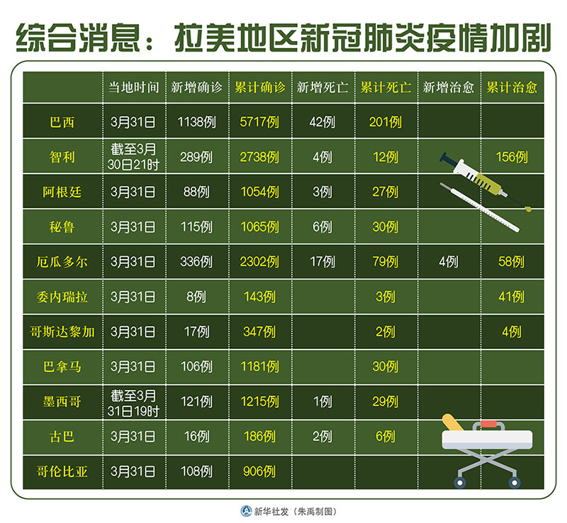 新華社墨西哥城3月31日電 綜合新華社駐拉美地區(qū)記者報道:拉美地區(qū)多國新冠肺炎疫情持續(xù)加劇,各國繼續(xù)加強(qiáng)防控。