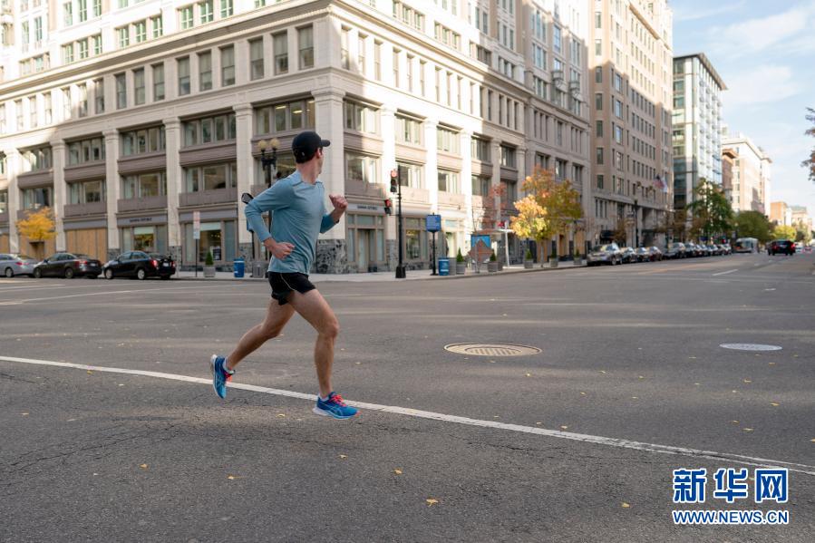 11月19日,在美國華盛頓,一名男子跑步經(jīng)過車輛稀少的路口。新華社記者 劉杰 攝