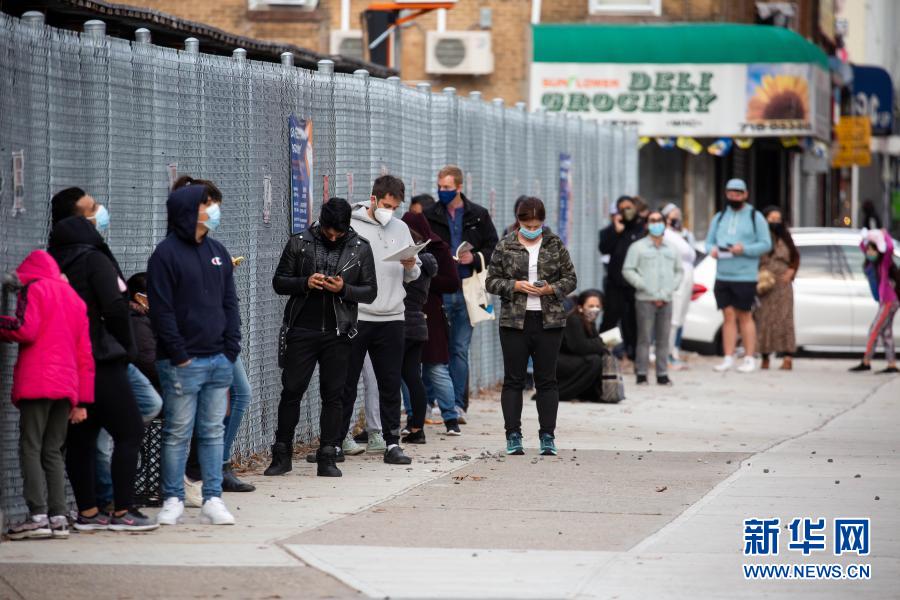 11月21日,人們在美國紐約排隊等待接受新冠病毒檢測。新華社發(fā)(郭克 攝)